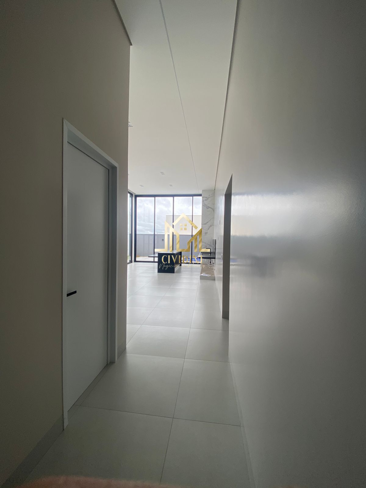 ✔️ Sala de estar, corredor central e cozinha com pé-direito duplo